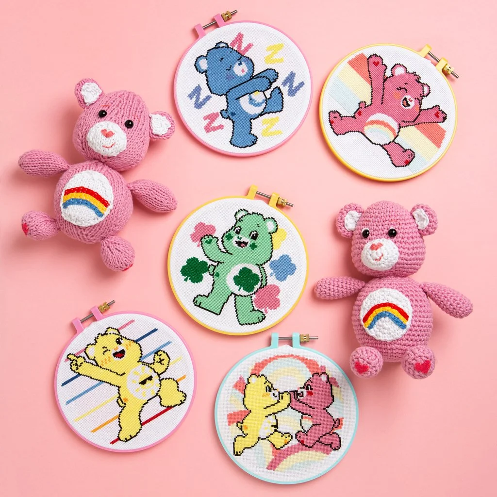 Stitch and Story is famous for licensed kits and our most recent collaboration has been with the iconic Care Bear team. We have launched knitting kits, crochet kits and cross stitch kits.